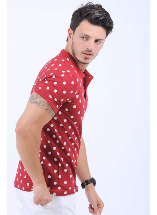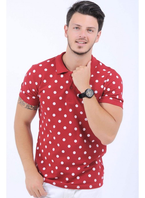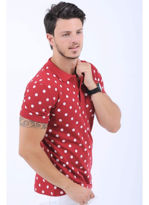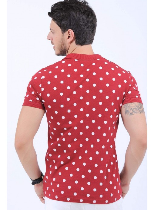 Kesim Tipi : Slim Fit Puantiyelli Polo Yaka Kırmızı T-Shirt