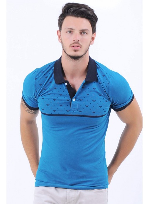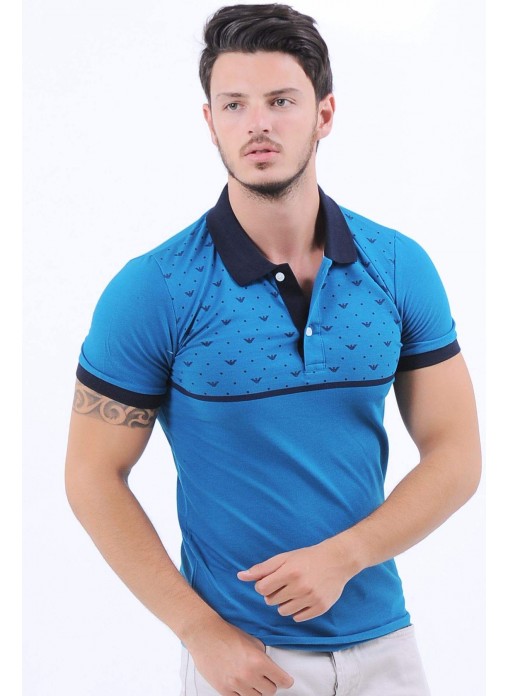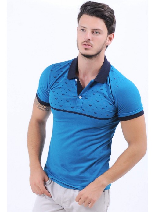 Siyah Desen Polo Yaka Mavi T-Shirt
