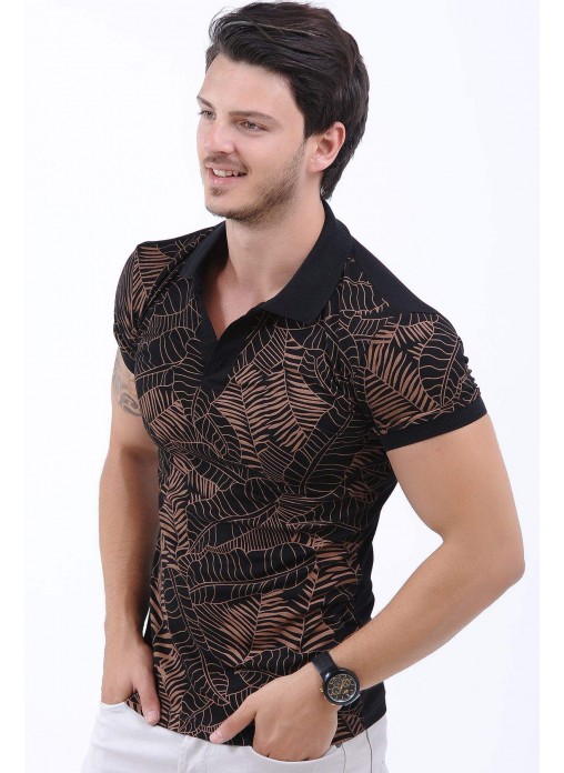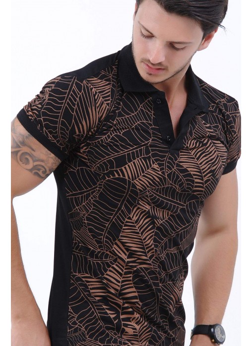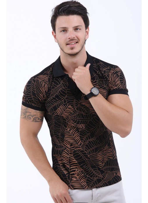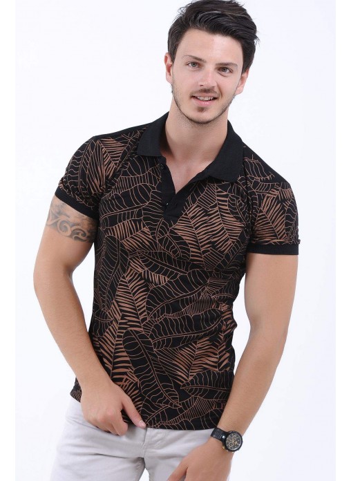 Turuncu Desen Polo Yaka Siyah T-Shirt