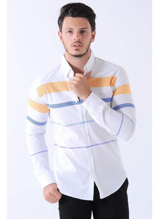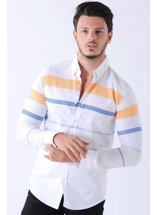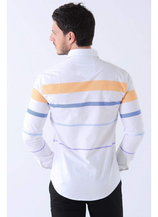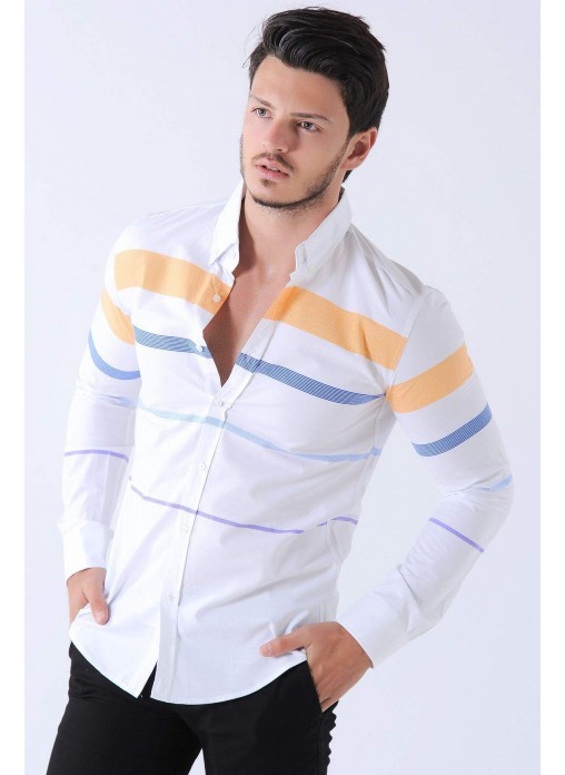Turuncu Mavi Çizgili Beyaz Gömlek
