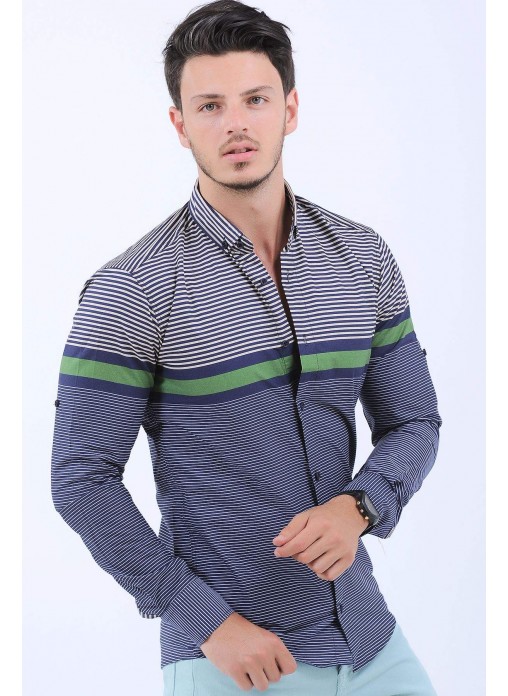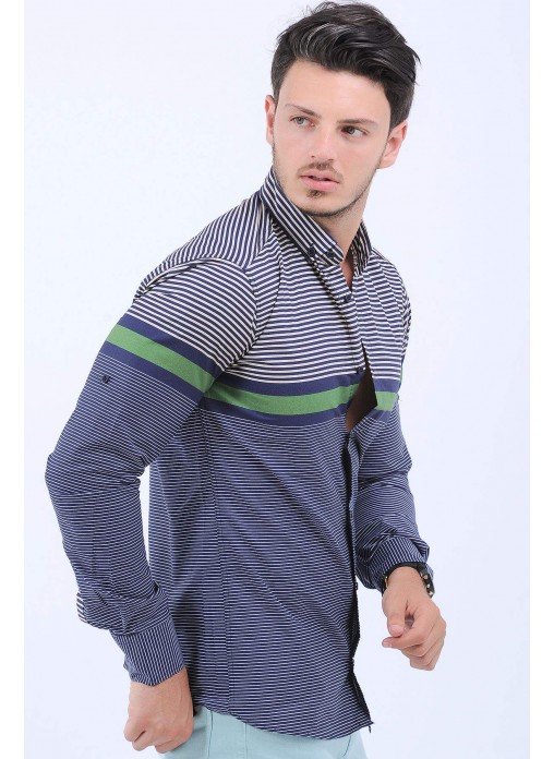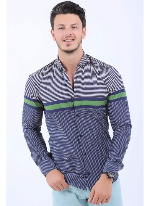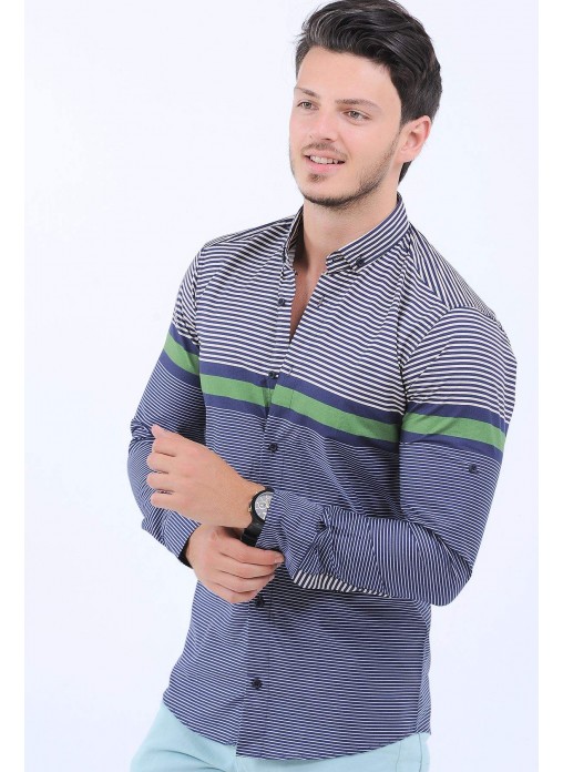 Kesim Tipi : Slim Fit Yeşil Beyaz Çizgi Desen Lacivert Gömlek