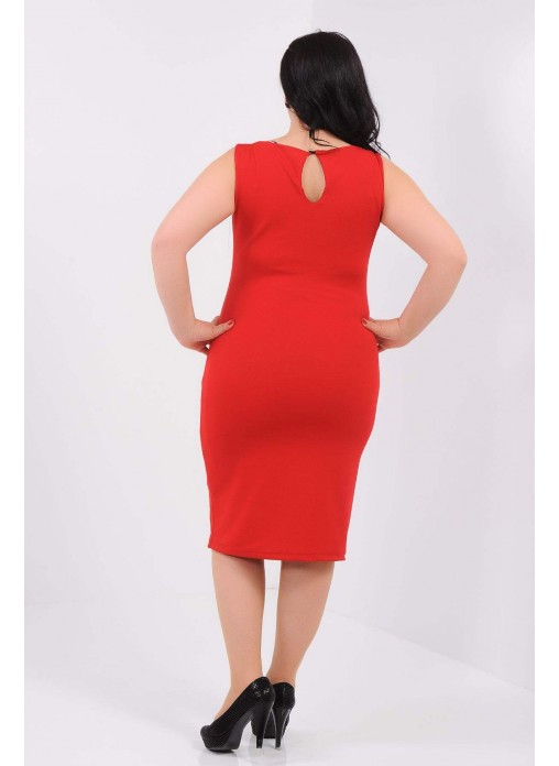 Broşlu Kolsuz Büyük Beden NarÇiçeği Elbise