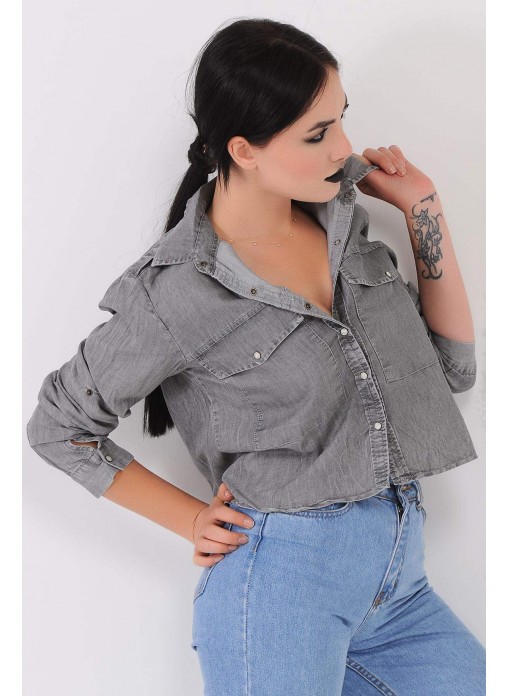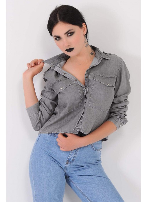 Kesim Tipi : Çift Cep Gri Kot Gömlek