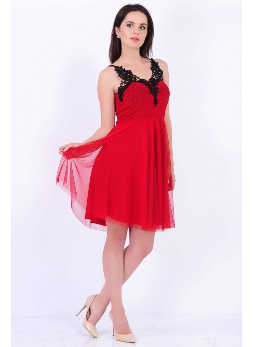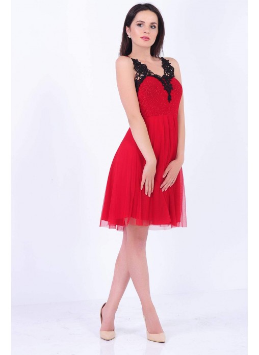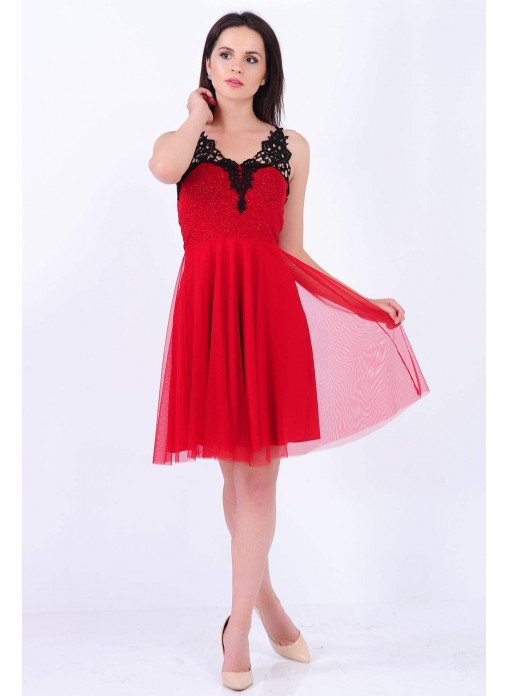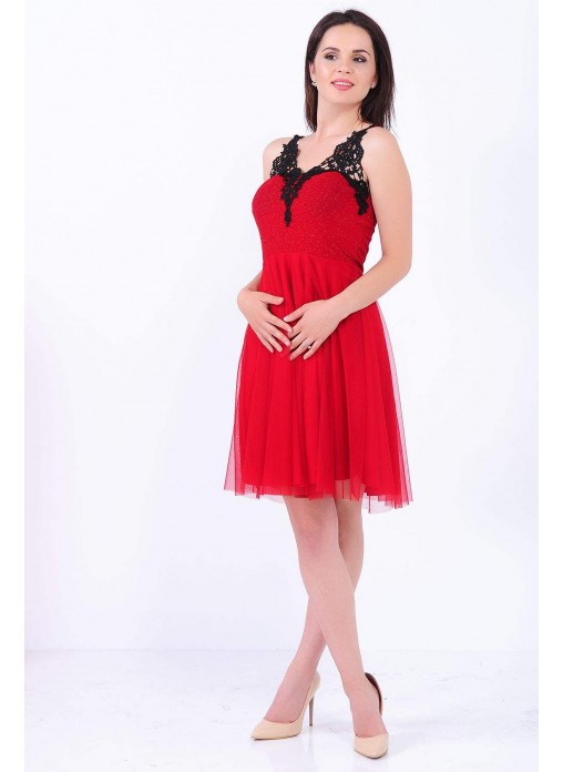 Kesim Tipi : Dantel Yakalı Tül Etek Kırmızı Elbise