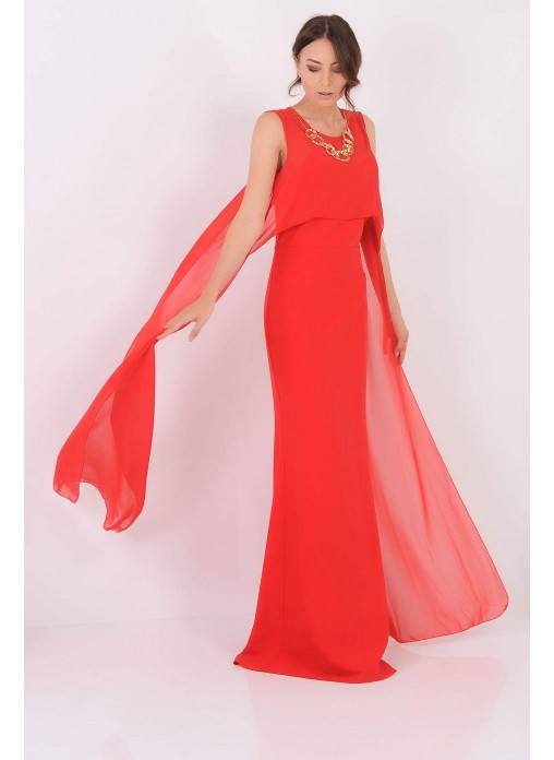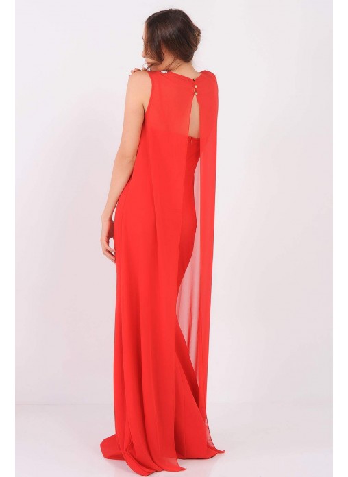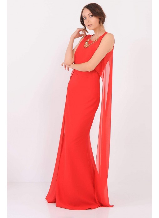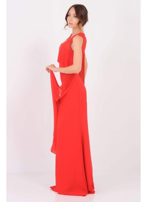 Halkalı Zincir Kolyeli Nar Çiçeği Abiye