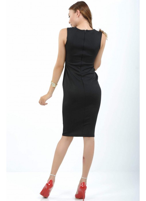 Kesik Detay Siyah Balık Elbise
