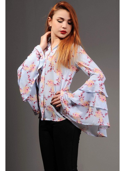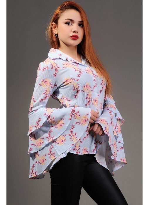 Kol Fırfırlı Çiçek Desenli Gömlek