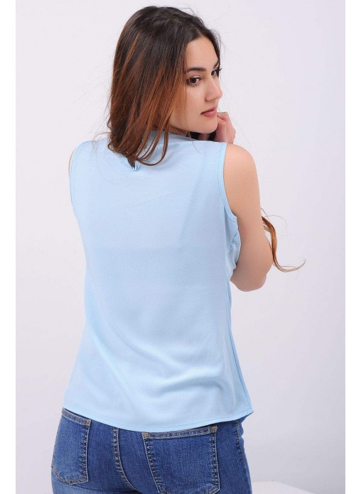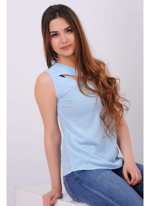 Kolsuz Çapraz Yaka Açık Mavi Bluz