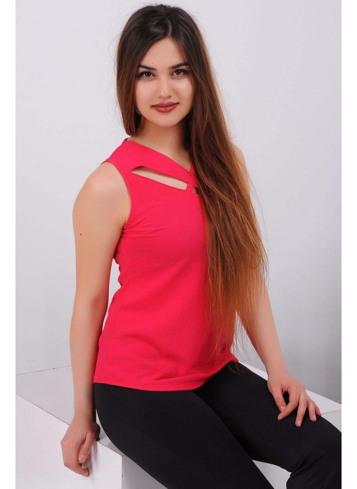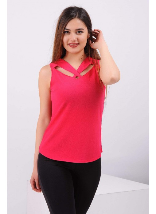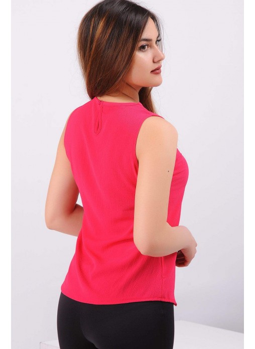 Kolsuz Çapraz Yaka Fuşya Bluz