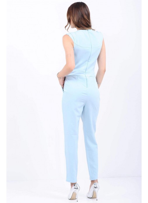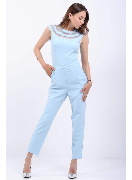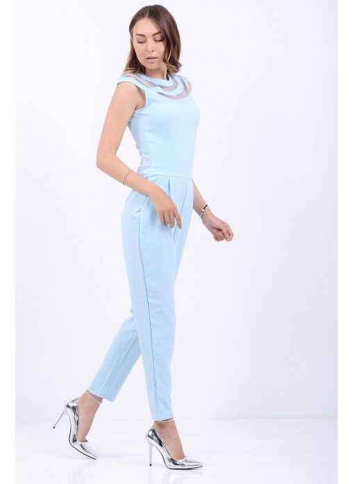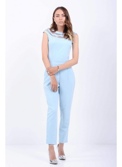 Fırfırlı Çiçek Desenli Açık Mavi Elbise