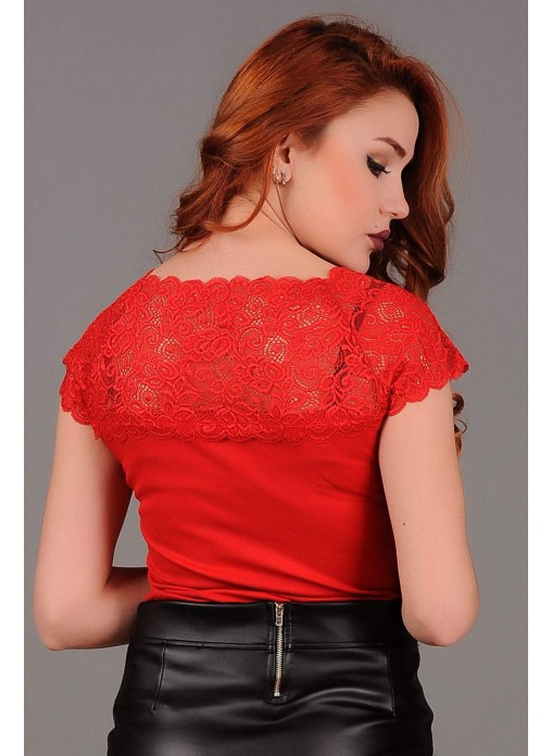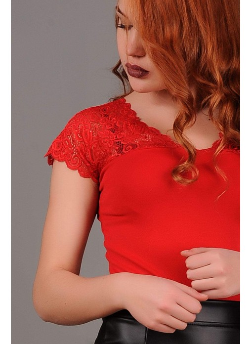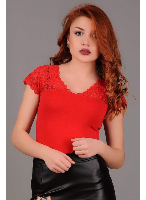 Üstü Dantelli Kırmızı Bluz