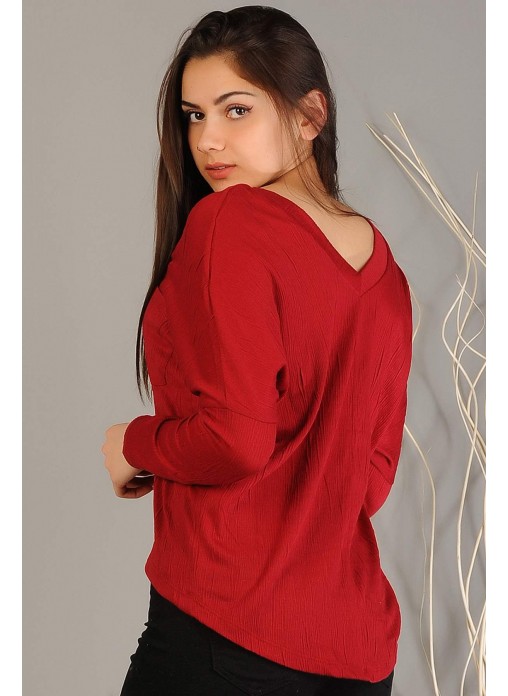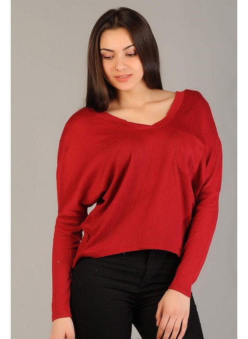 V yaka Bordo Bluz