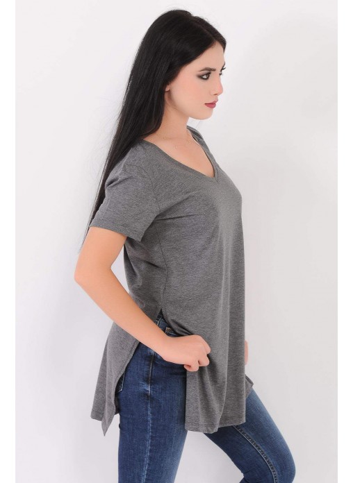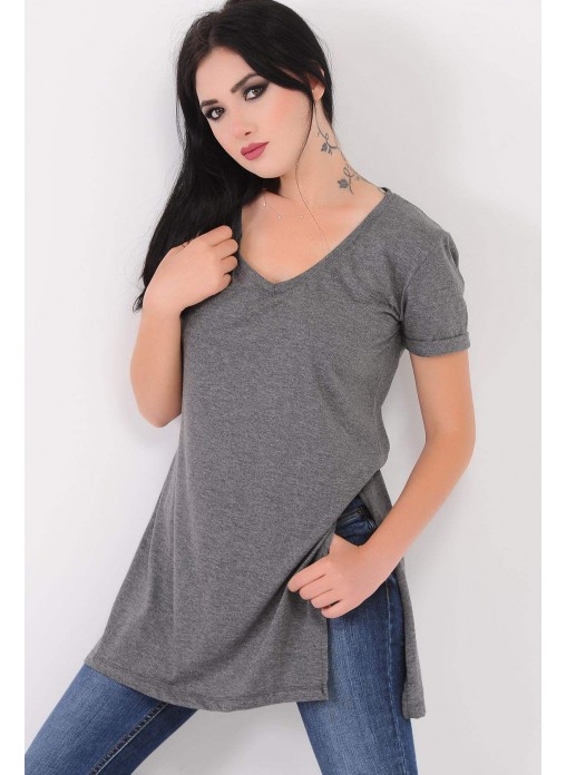 Kesim Tipi : V Yaka Kesikli Gri T-Shirt