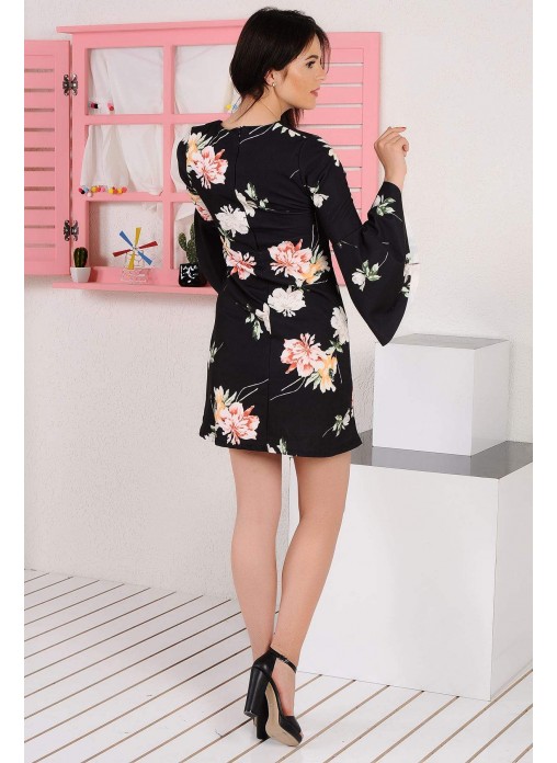 Kesim Tipi : Volanlı Kol Çiçek Desenli Siyah Elbiseiti Kareli Fırfırlı Elbise