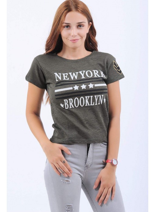 Haki Baskı Kol Fermuar Lacivert T-Shirt