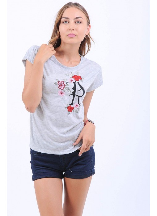 Siyah Beyaz Çizgili Baskılı T-Shirt