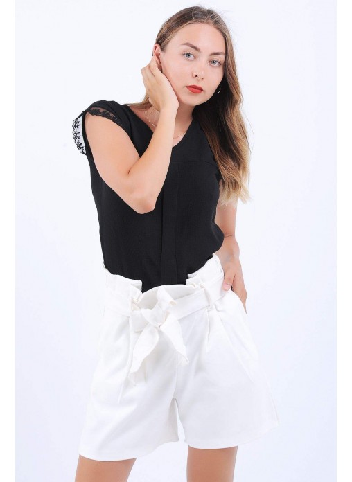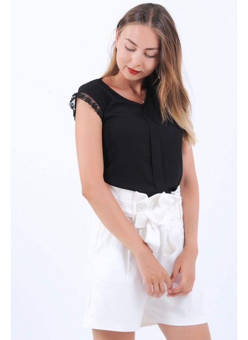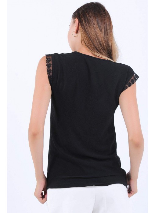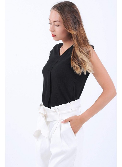 Dantel Detay Kolsuz Siyah Bluz