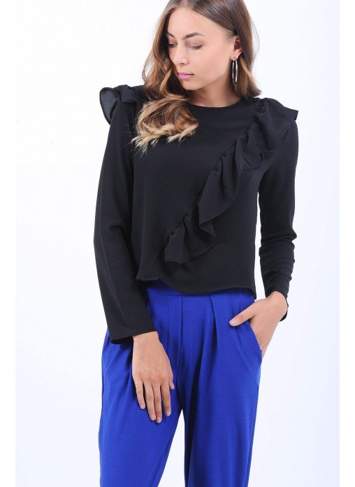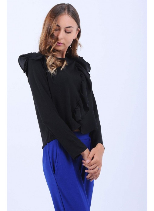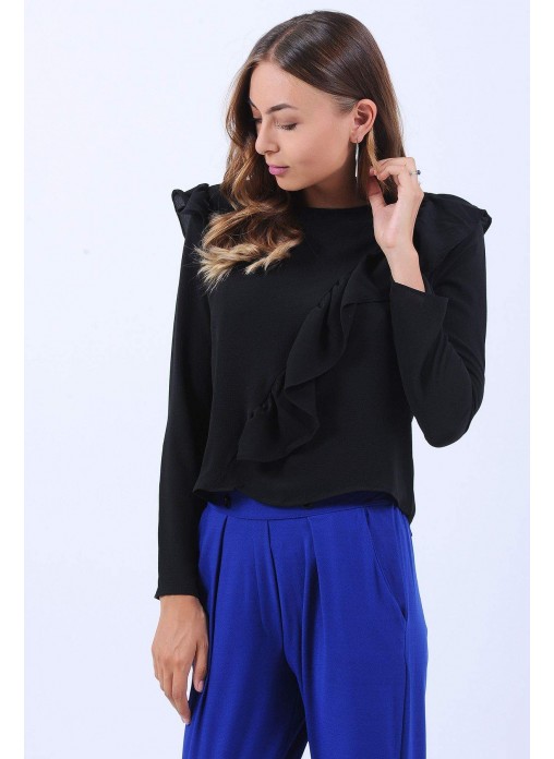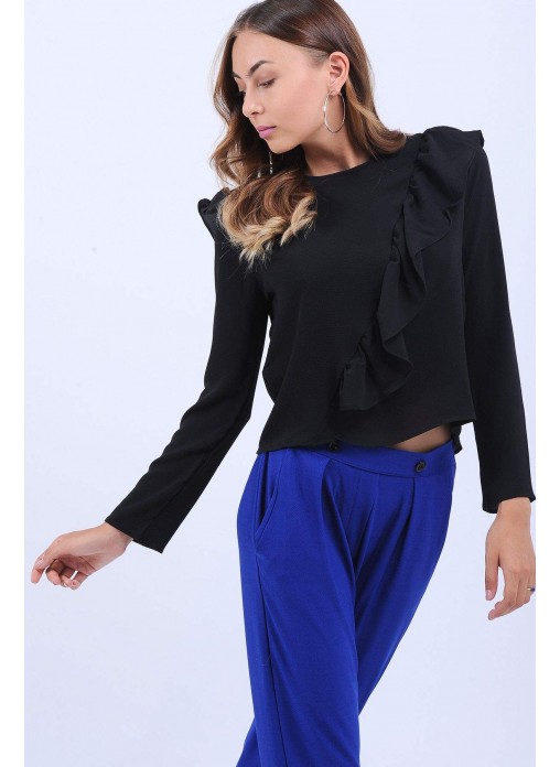 Fırfır Detay Siyah Bluz