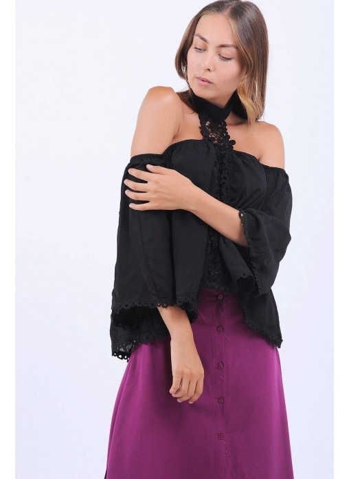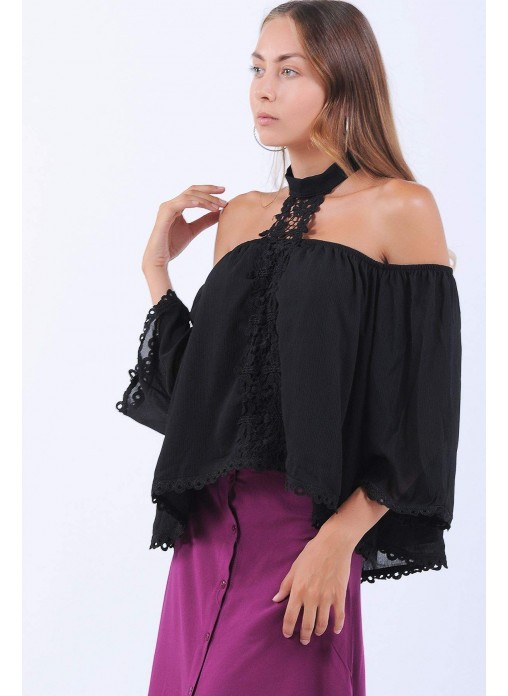 Turuncu Desenli Büstiyer Pantolon Takım Siyah