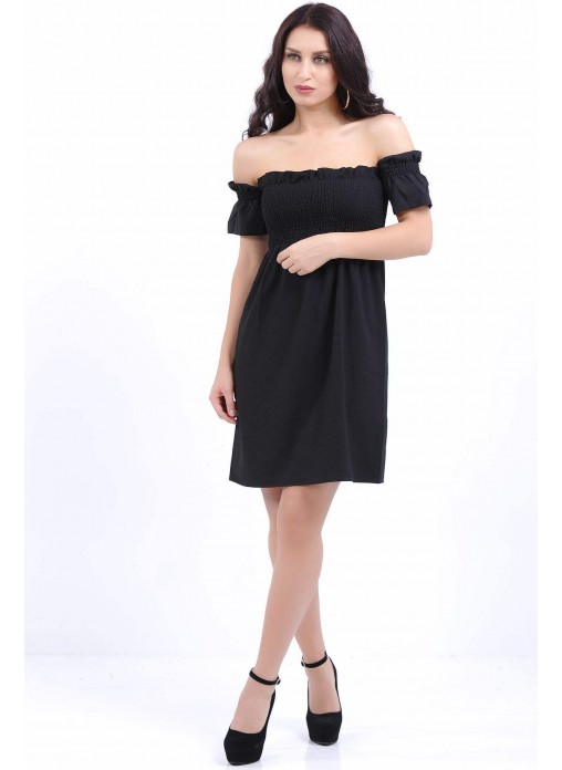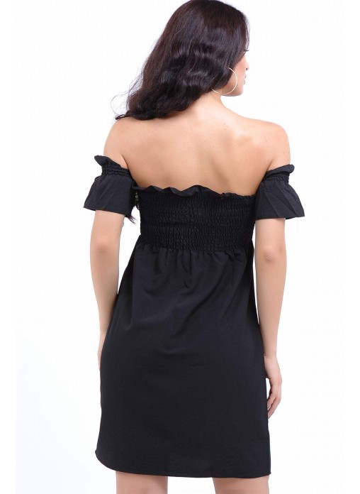 Siyah Şeritli Çapraz Yaka Beyaz Elbise