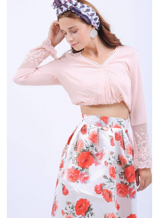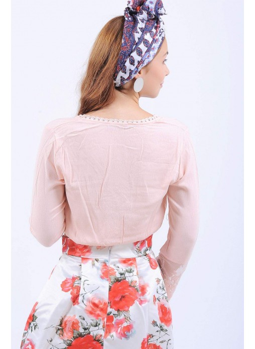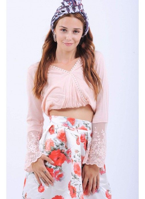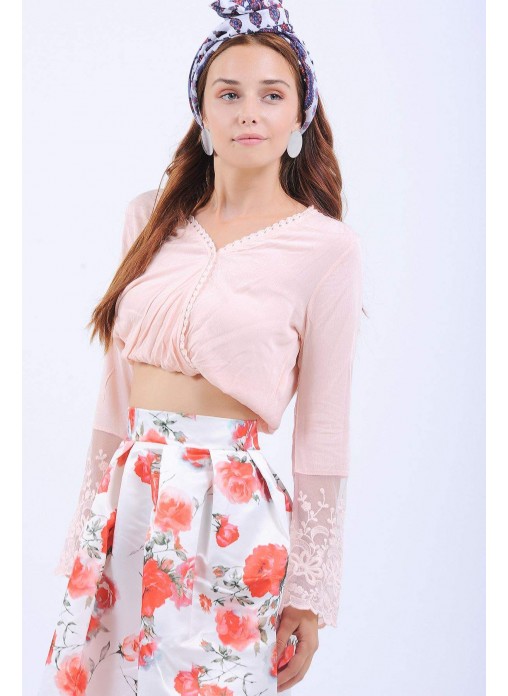 Kol Dantel Güpürlü Pudra Bluz