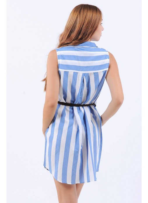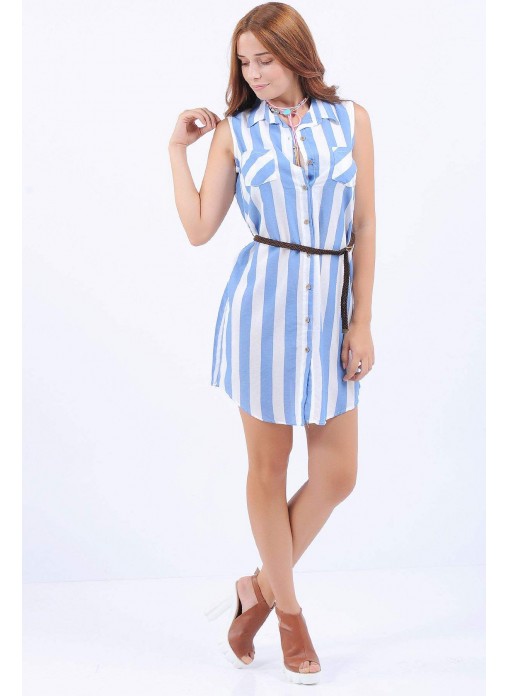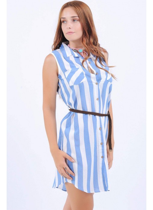 Kolsuz Mavi Beyaz Çizgili Elbise