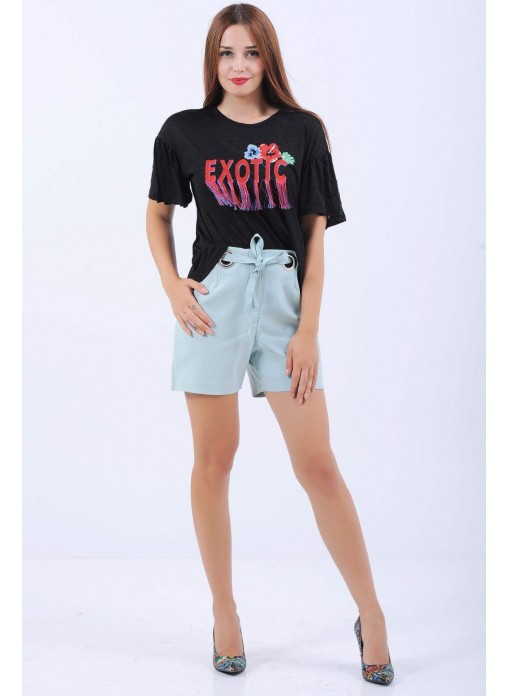 Omuz Açık Çiçek Desenli Geniş Etek Siyah Elbise