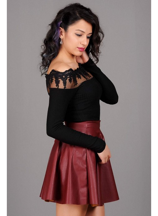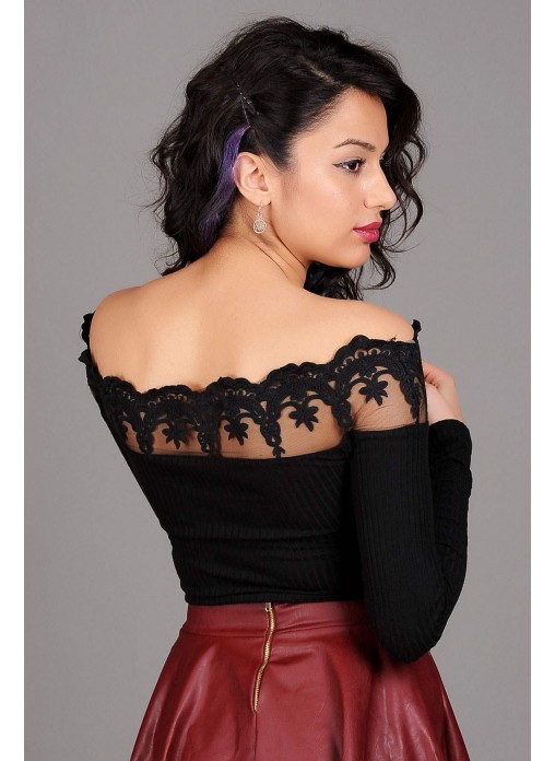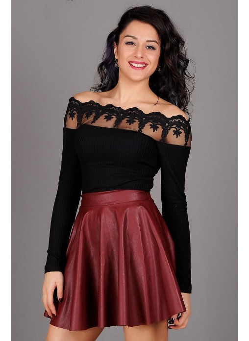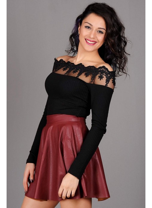 Küpürlü Kayık Yaka Siyah Bluz