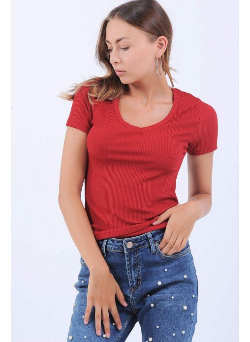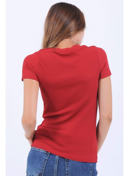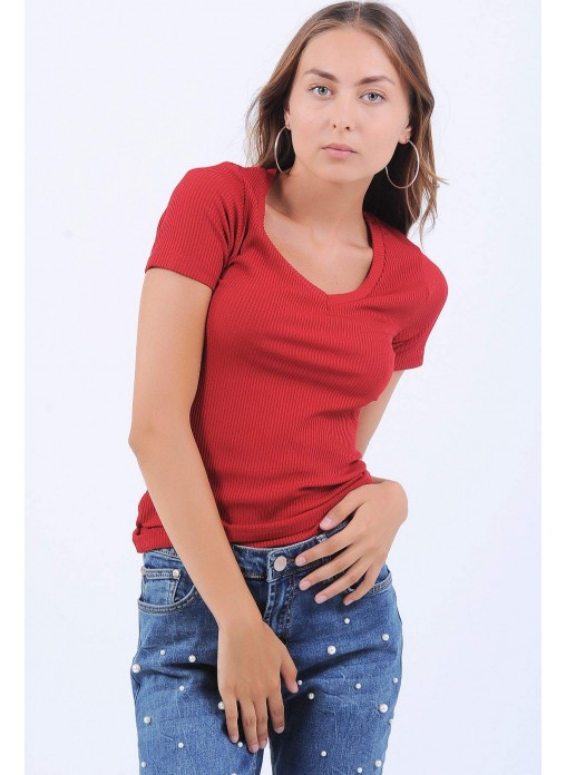 Oval Yaka Kırmızı Bluz