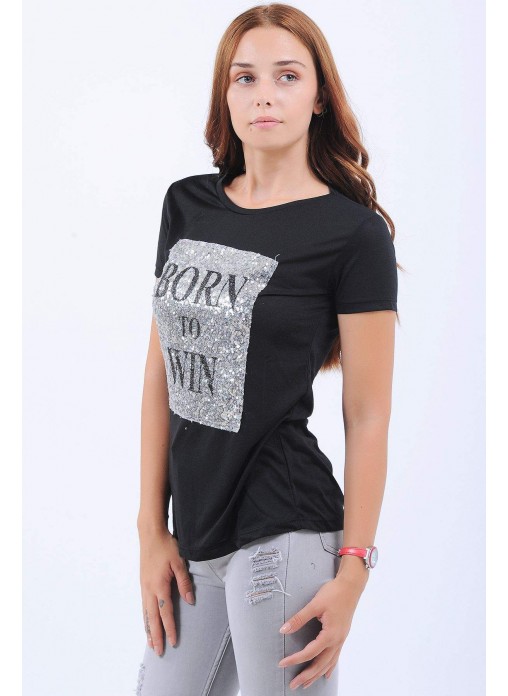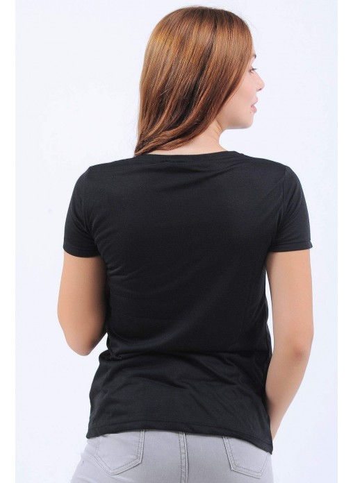 Kol Volanlı Çiçek Desenli Siyah Bluz