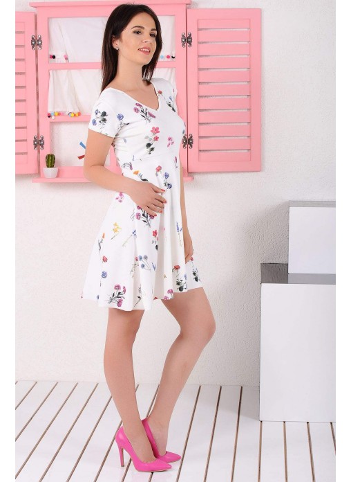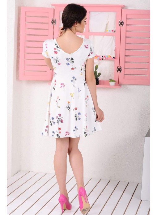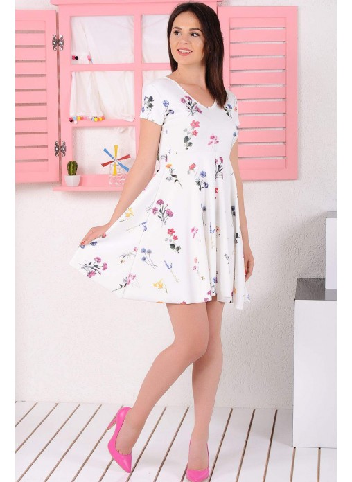 Kesim Tipi : Çiçek Desenli Krep Beyaz Elbise