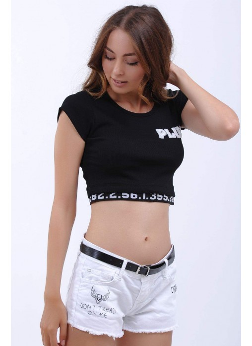 Plus Nakışlı Crop Siyah Büstiyer