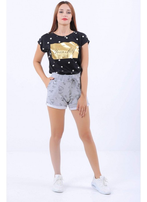 Kayık Yaka Siyah Beyaz Puantiyeli Elbise