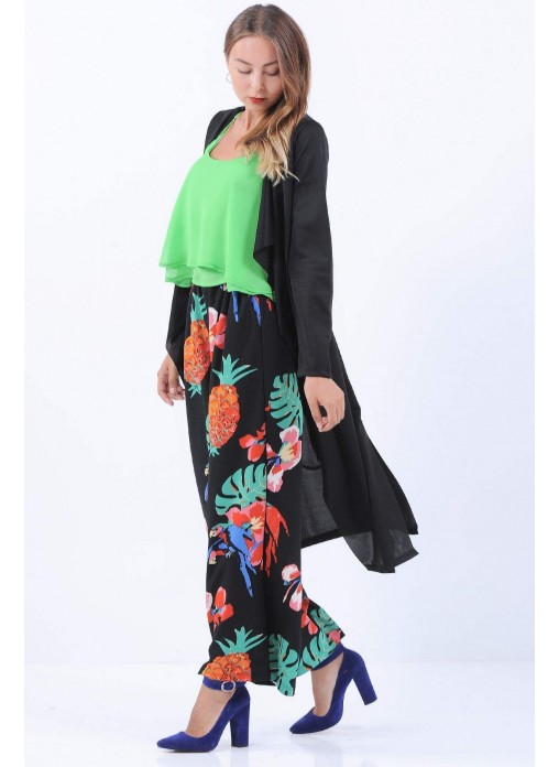 Dantel Yaka Püsküllü Turkuaz Elbise