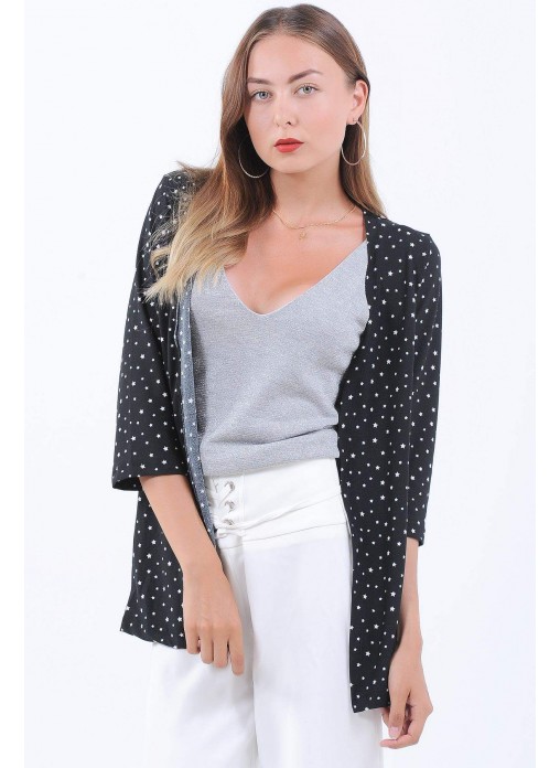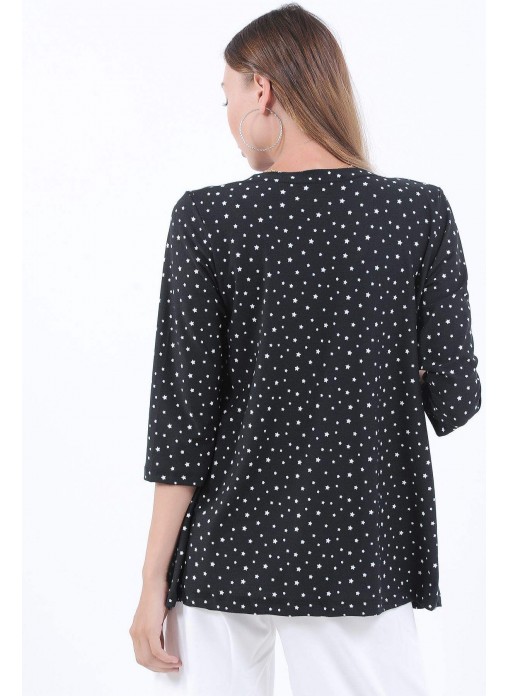 Beyaz Desenli Polo Yaka Siyah T-Shirt