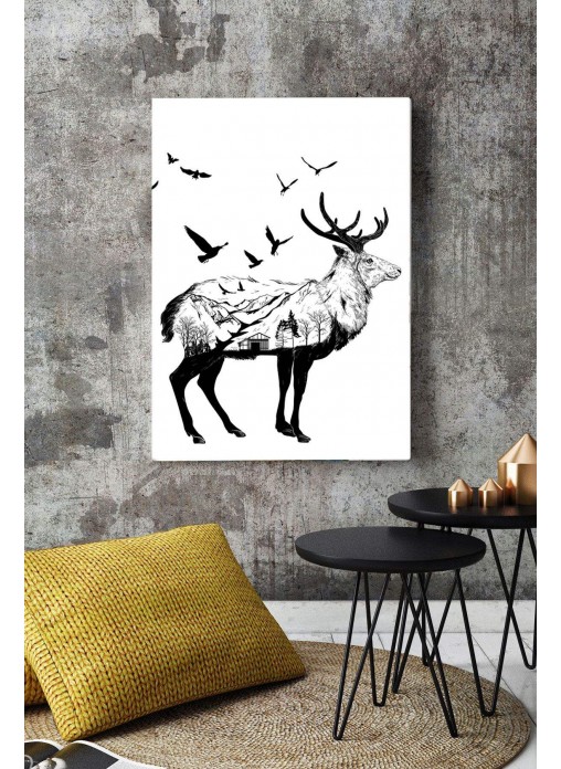 Geyik ve Orman konulu şık,gösterişli bir illüstrasyon çalışması kullanılmıştır.