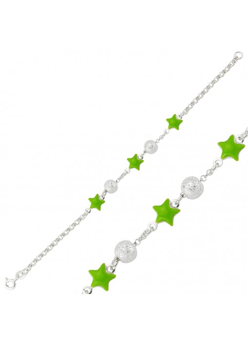 Gümüş Yeşil Yıldız Bileklik Gümüş yeşil yıldız çocuk bilekliği ile çocuklarınız sevindirebilirsiniz. Ürün hediye kutusunda gönderilecektir... Ürünlerimizin tamamı el emeği ile üretilmiştir ve değerli taşlar nedeniyle ürün ağırlığında ± %5 sapma olabilmektedir. Ağırlık: 3 gr