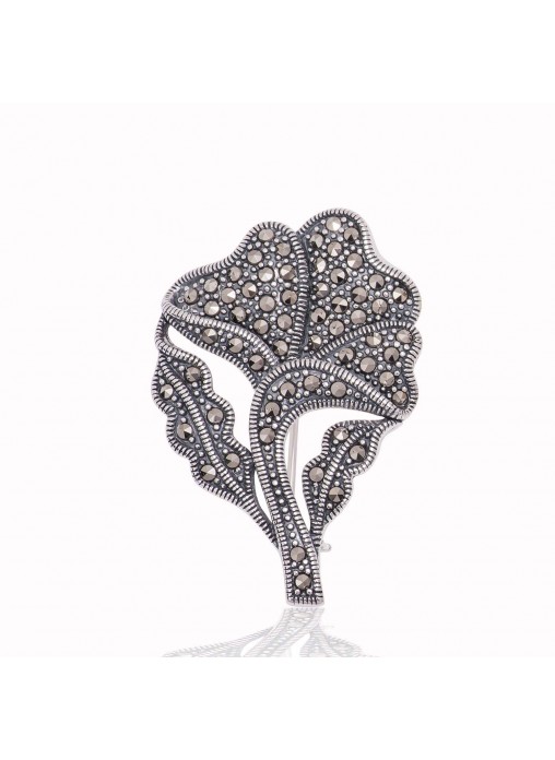 Gümüş Markazit Taşlı Yaprak Broş