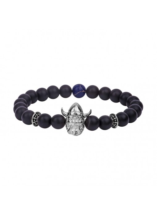 Gümüş Viking Figürlü Mat Oniks ve Lapis Taşı Erkek Bileklik
