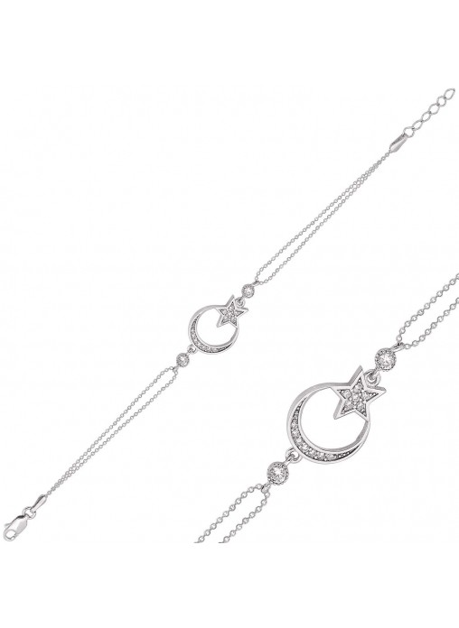 Gümüş Ay Yıldız Bileklik Türk Bayrağının rengini şehitlerin kanından ilhamını da kan gölüne yansıyan ay ve yıldızdan aldığını biliyoruz. Bayrağın taşıdığı kutsal anlamı bileğinizde taşımak ve sevdiklerinizle paylaşmak için kaçırılmayacak bir fırsatıdır. En : 2 cm Boy : 1.5 cm Ağırlık: 3.7 gr Ürün kadife hediye kutusunda gönderilecektir... Ürünlerimizin tamamı el emeği ile üretilmiştir. Gümüş ve değerli taşlar nedeniyle ürün ağırlığında ± %5 sapma olabilmektedir.