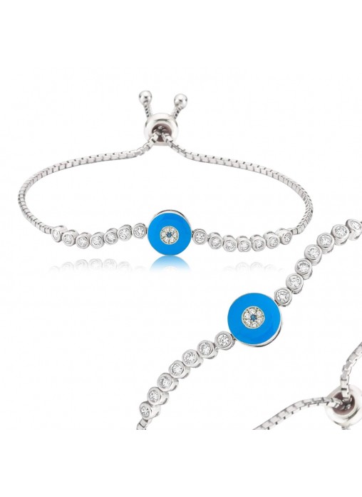 Gümüş Ayarlanabilir Mavi Nazar Bileklik
