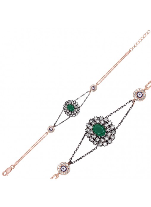 Gümüş Mat Yeşil Taşlı Otantik Bileklik