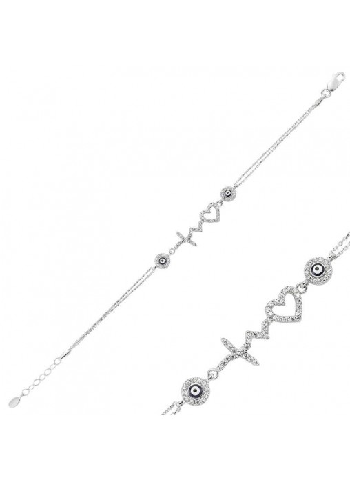 Zirkon Taşlı Kalpli Nazar Bileklik