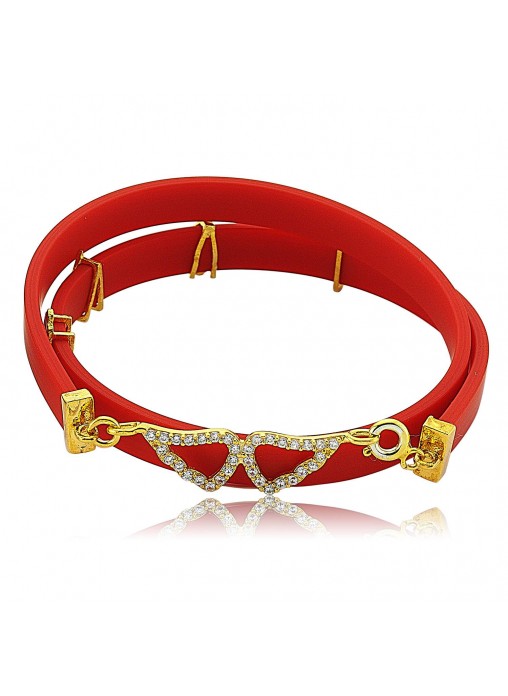 Kırmızı Kauçuk Gümüş Melek Kanadı Bileklik