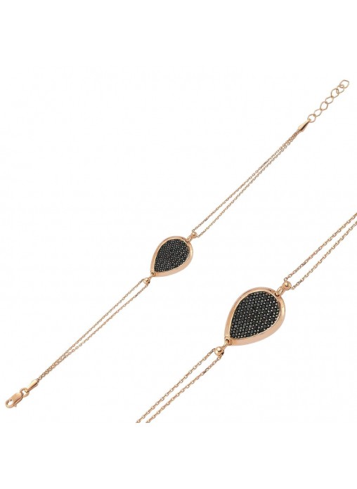 Gümüş Siyah Taşlı Damla Bileklik