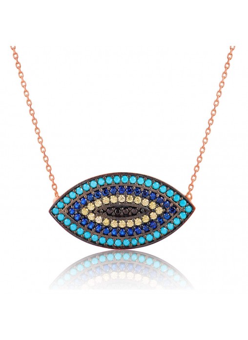 Gümüş Nazar Kolye Birçok kültürde kötü enerjinin zararlarından korunmak için çeşitli tılsımlar kullanılmıştır. Doğu kültürlerinin çoğunda kullanılan tılsım ise gözdür. Nazar boncuğu da göz şeklinden ilhamla tasarlanmıştır. Mavi rengin seçilmesi de tesadüf değildir. Renkli gözlü kişilerin enerjisini daha etkili yansıttığı inancı gereği nazar boncukları çoğunlukla mavi olarak tasarlanır. Güzelliğiyle göz kamaştıran, nazardan korunmasını istediğiniz kişilere ve sevdiklerinize nazar kolye armağan edebilirsiniz. En : 2.60 cm Boy : 1.40 cm Ağırlık : 4.00 gr Ürün hediye kutusunda gönderilecektir... Ürünlerimizin tamamı el emeği ile üretilmiştir. Gümüş ve değerli taşlar nedeniyle ürün ağırlığında ± %5 sapma olabilmektedir.