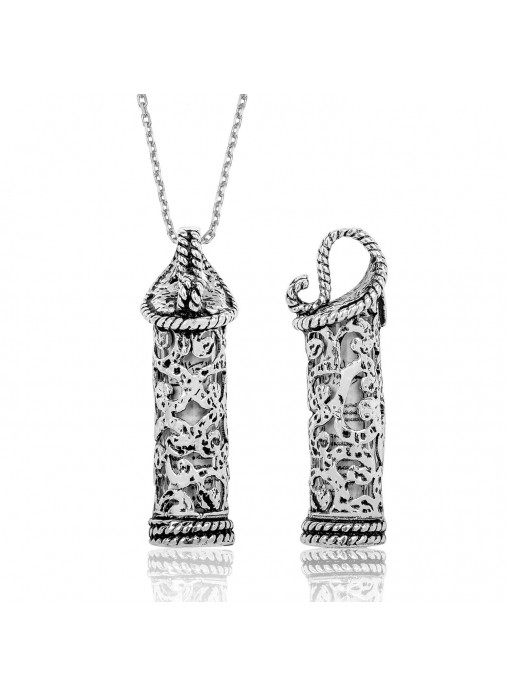 Gümüş Sarmaşık Desenli Cevşen Kolye