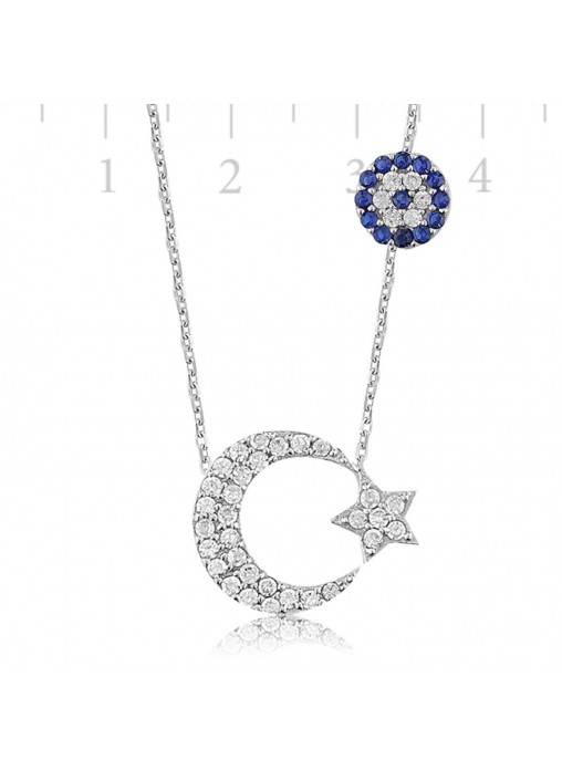 Gümüş Ay-Yıldız Kolye Türk Bayrağının rengini şehitlerin kanından ilhamını da kan gölüne yansıyan ay ve yıldızdan aldığını biliyoruz. Bayrağın taşıdığı kutsal anlamı boynunuzda taşımak ve sevdiklerinizle paylaşmak için kaçırılmayacak bir fırsat. En : 2 cm Boy : 1.5 cm Ağırlık: 2.8 gr Ürün hediye kutusunda gönderilecektir... Ürünlerimizin tamamı el emeği ile üretilmiştir. Gümüş ve değerli taşlar nedeniyle ürün ağırlığında ± %5 sapma olabilmektedir.