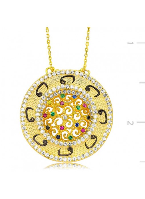 Zirkon Taşlı Vav Kolye En : 3.00 cm Boy : 3.00 cm Zincir Uzunluğu : 43.00 cm Ürün hediye kutusunda gönderilecektir... Ürünlerimizin tamamı el emeği ile üretilmiştir ve değerli taşlar nedeniyle ürün ağırlığında ± %5 sapma olabilmektedir.
