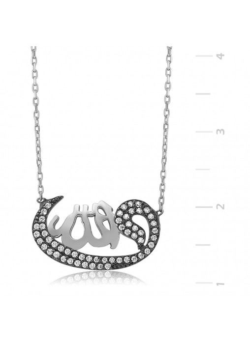 Gümüş Siyah Zirkon Taşlı Desen Kolye